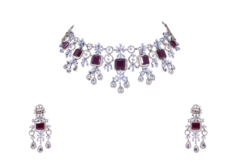 Dangling Flower Ruby Diamond Necklace