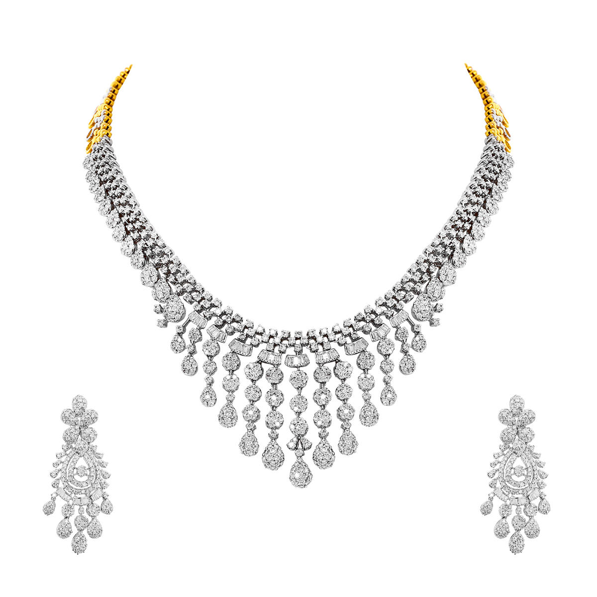 Real 18K Bridal White N Yellow Gold & Diamond Necklace Set With Earrings