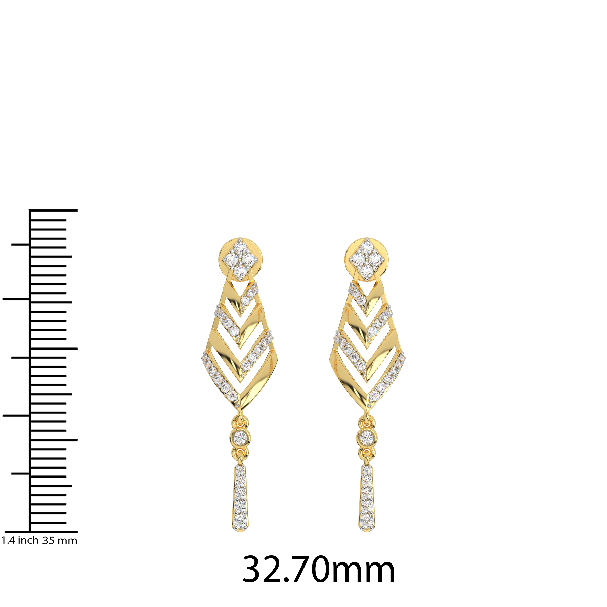 Diamond and Gold Christmas Tree Earrings